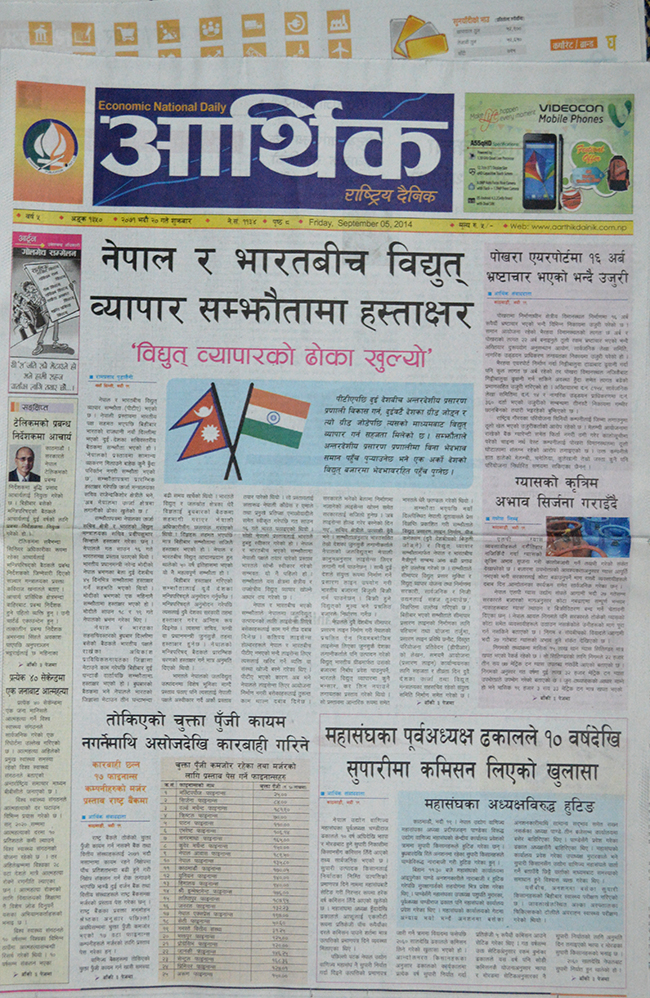 ‘नेपाल र भारतबीच विद्युत ब्यापार सम्झौतामा हस्ताक्षर’ शीर्षकमा खबर छापेको छ । पीटीएपछि दुईदेशबीच अन्तरदेशीय प्रशारण प्रणाली विकास गर्न, दुईवटै देशमा ग्रीड जोड्न र त्यो ग्रीड जोडेपछि त्यसको माध्यामबाट विद्युत ब्यापार गर्न सहजता मिलेको छ ।